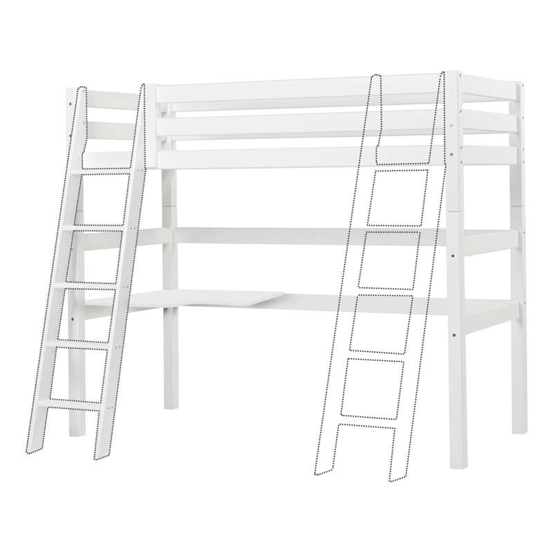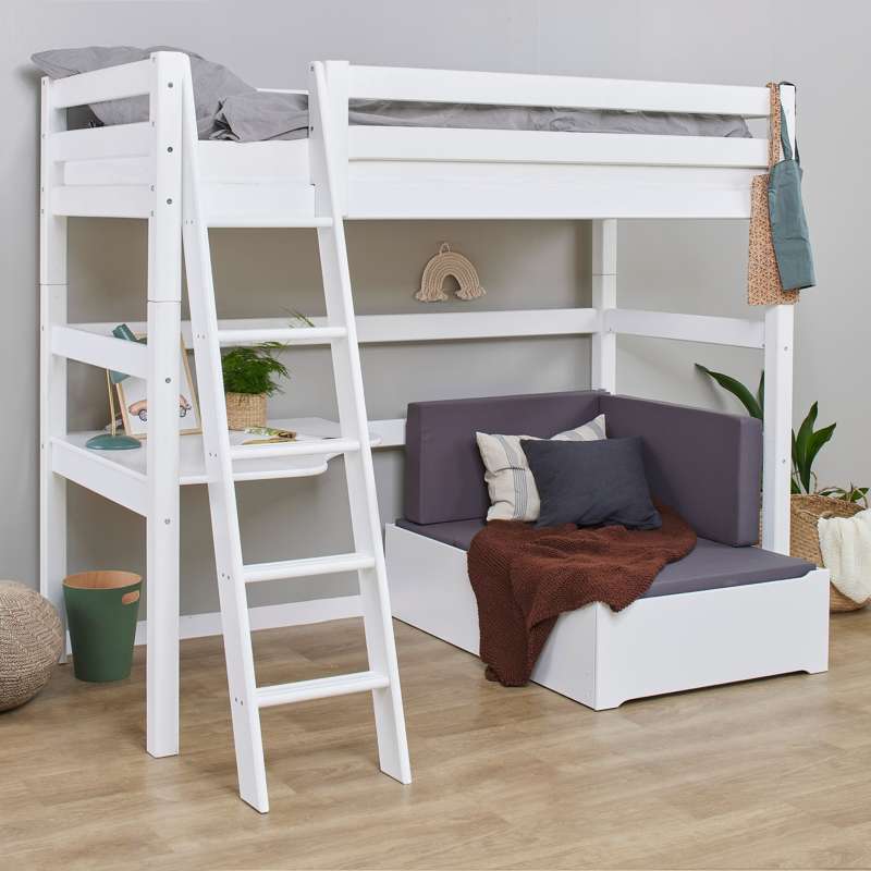 Hoppekids ECO Luxury - MEGA Seng m. Lounge Modul og Bordplade - 90x200 cm. - Skrå Stige - Fleksibel Indlægsbund - Hvid