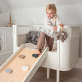 Creează provocări motorii pentru copilul tău prin montarea toboganului și a peretelui de escaladă pe Sebra Pat sau Sebra Triunghiul de escaladă.