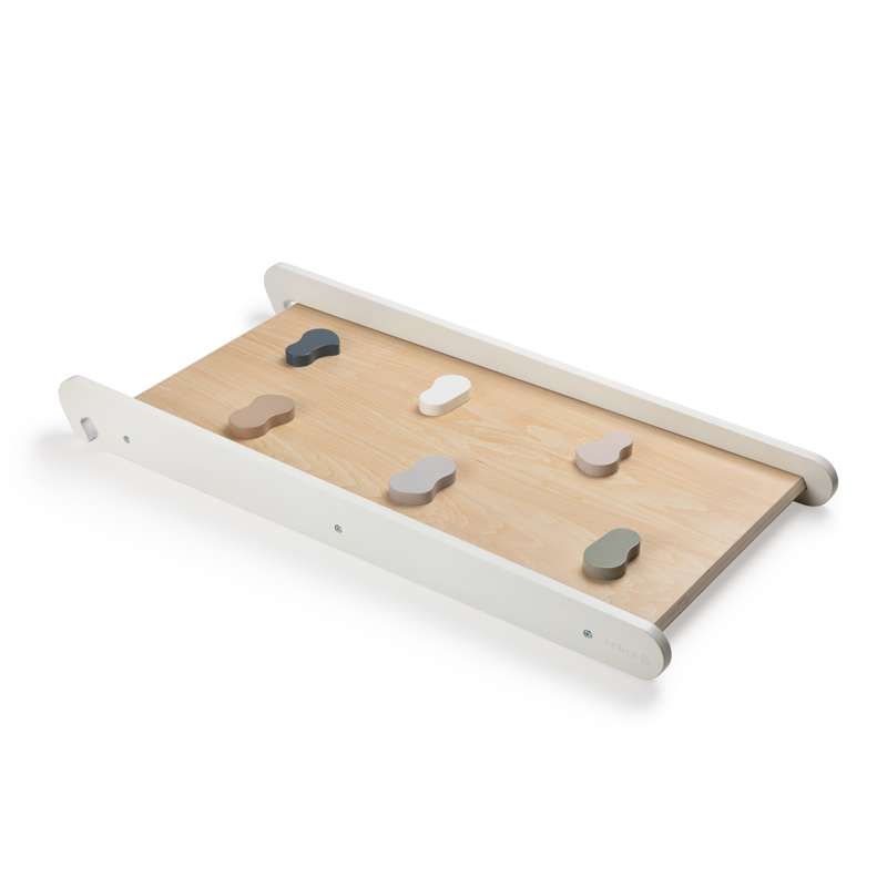 Prinderile robuste de pe latura de escaladă au culori care se potrivesc cu universul de design al Sebra și prin care poți vedea structura lemnului.