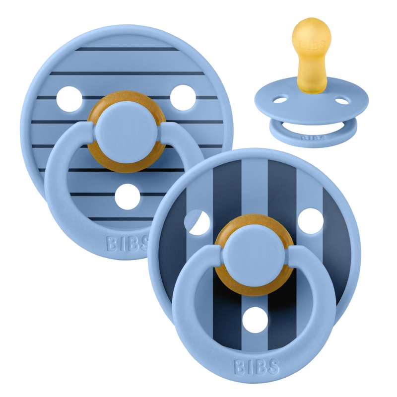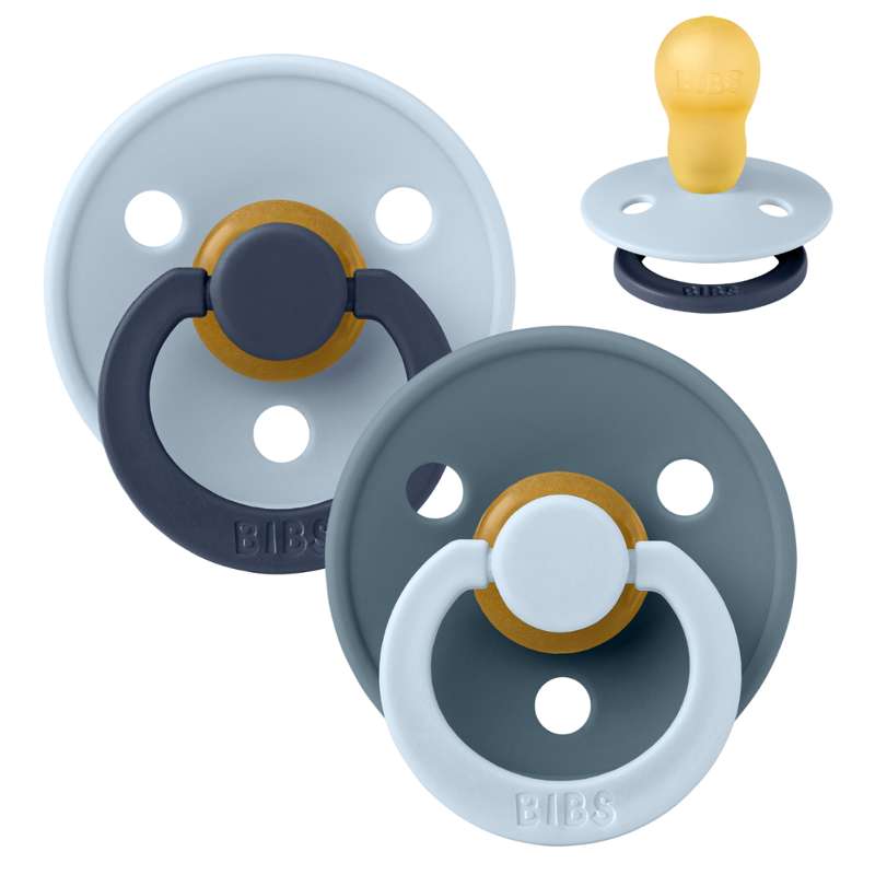 Bibs Okrúhly Colour Cumlík - 2-balenie - veľ. 2 - prírodná guma - Štúdio - Špendlík - Nebeská modrá/Nebeská modrá