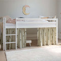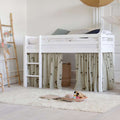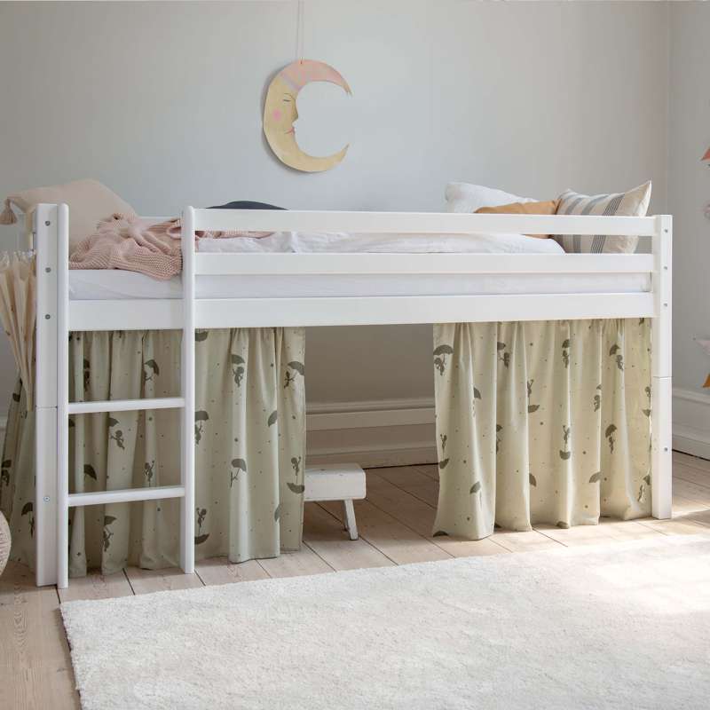 Forhænget skaber også en hyggelig hule under den halvhøje seng, som er perfekt til leg eller når dit barn har brug for en lille pause fra resten af verden. Dekorér eventuelt hulen med en madras, tæpper, puder, lyskæder og andre hyggelige sager.