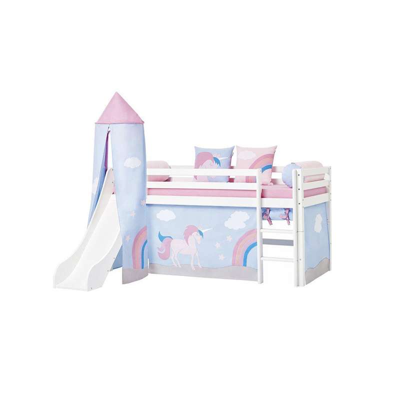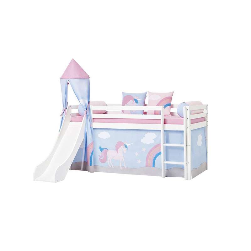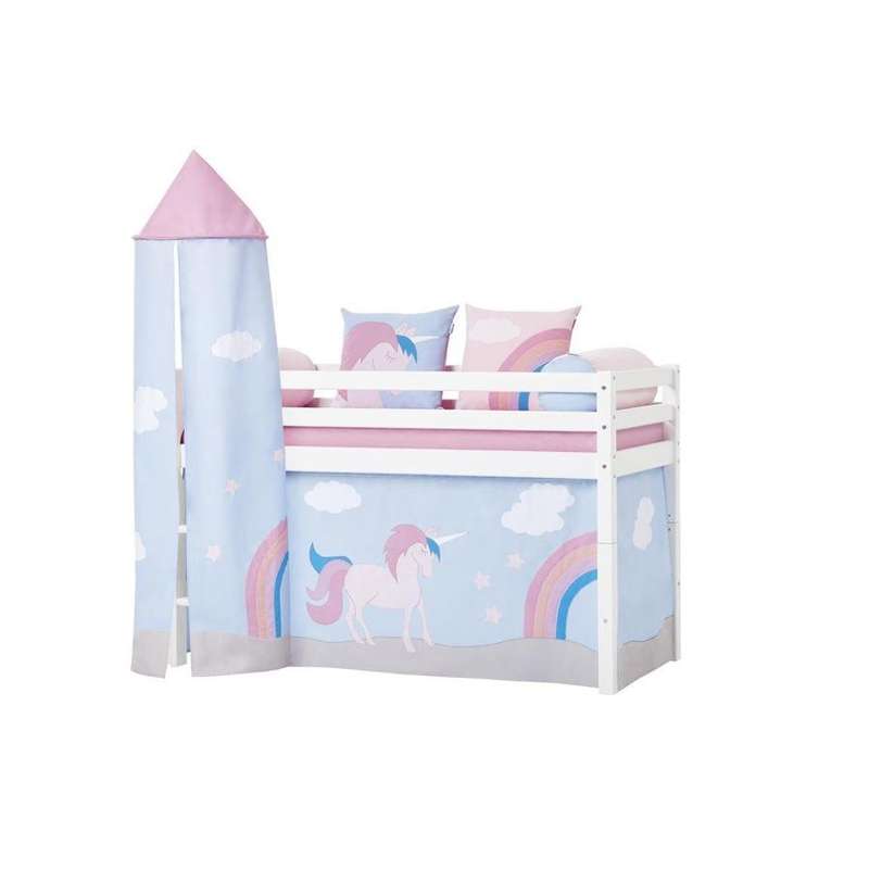 Eventyrligt tårn fra universet Unicorn som gør turen op ad stigen og i seng sjovere. Passer til alle halvhøje senge fra Hoppekids.