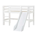 Hoppekids ECO Luxury - Halvhøj Seng m. Rutsjebane - Lige Stige - Flere Størrelser - Hvid