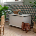 Smart og praktisk legetøjskiste på hjul fra Hoppekids. Kisten har fire hjul hvoraf to af dem kan låses samt en lukkemekanisme, der holder låget i den åbnede position, så låget ikke smækker. Kisten er overfladebehandlet med miljøvenligt, vandbaseret lak.